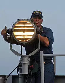 Radio navigation aids such as VORs and NDBs for aeronautical use broadcast identifying information in the form of Morse Code, though many VOR stations now also provide voice identification.[43] Warships, including those of the U.S. Navy, have long used signal lamps to exchange messages in Morse code. Modern use continues, in part, as a way to communicate while maintaining radio silence.