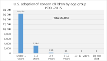 An archived web page of the Bureau of Consular Affairs website that said that it was last updated in 2009 said that US couples who wanted to adopt Korean children needed to meet certain requirements. The web page said that the couples needed to be between 25 and 44 years old with an age difference between spouses of no more than 15 years, the couples needed to be married for three years, the couples needed to have an income higher than the US national average, and the couples could not already have more than five children. The web page said that US couples had to pay a fee between $9,500 and $10,000 to adopt a Korean child, and the web page said that it took one to four years after applying for the adopted Korean child to arrive in the United States. The web page said that the wait time after applying for US couples who wanted to adopt was about three years for a healthy Korean child and one year for a Korean child with special needs.[36]