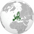 - ^ Number of countries in Trade bloc: EU (27), EAEC (6), EFTA (4), CEFTA (7), other regional blocs (not listed because countries inside are likely, sooner or later, to join EU or EAEC, some already seriously involved in joining processes); CIS (11), GUAM (4); EFTA countries and 4 European microstates marked x, while not EU members, are partially integrated in EU through euro currency, Schengen treaty, EU single market - EEA and Customs Union, see also;European Neighbourhood Policy, Eastern Partnership, Euromediterranean Partnership, Mediterranean Union, Transatlantic Free Trade Area, Eurosphere