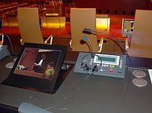 Simultaneous interpretation using electronic equipment where the interpreter can hear the speaker's voice as well as the interpreter's own voice was introduced at the Nuremberg trials in 1945.[11] The equipment facilitated large numbers of listeners, and interpretation was offered in French, Russian, German and English.[12] The technology arose in the 1920s and 1930s when American businessman Edward Filene and British engineer Alan Gordon Finlay developed simultaneous interpretation equipment with IBM.[13] Yvonne Kapp attended a conference with simultaneous translation in 1935 in the Soviet Union.[14] As it proved successful, IBM was able to sell the equipment to the United Nations, where it is now widely used in the United Nations Interpretation Service.