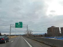 In 1991, maintenance of I-84 in downstate New York was transferred from the New York State Department of Transportation (NYSDOT) to the New York State Thruway Authority (NYSTA). The monies for that purpose came from tolls levied on I-190 in downtown Buffalo.[13] Under the laws authorizing the Thruway construction, the tolls were to be removed once the original bonds used to pay for the construction were paid off, which occurred in 1996; however, the tolls would remain for ten more years. Attorney Carl Paladino brought a lawsuit against the state in 2006 to force the removal of the tolls.[14] On October 30, 2006, the Thruway Authority voted to both begin the process of returning maintenance of I-84 to NYSDOT and to remove the tolls on I-190 in Buffalo. Collection of the tolls stopped that day.[15] Both major candidates in the 2006 New York gubernatorial election, Democrat Eliot Spitzer and Republican John Faso, had pledged to remove the tolls on I-190 if elected.[16] While the toll barriers in Buffalo have since been demolished, the tolls further north on the two Grand Island bridges still remain.[17][18]