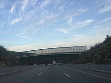 As a result of the challenge of crossing the Pennsylvania mountains by automobile, William Sutherland of the Pennsylvania Motor Truck Association and Victor Lecoq of the Pennsylvania State Planning Commission proposed a toll highway in 1934.[78][94] This highway would be a four-lane limited-access road modeled after the German autobahns and Connecticut's Merritt Parkway.[91][95][96] The turnpike could also serve as a defense road,[97] and construction costs could be reduced by using the abandoned tunnels of the South Pennsylvania Railroad project.[78]