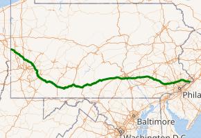 Pennsylvania Turnpike mainline highlighted in green | ||||||||||