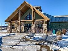 The small town of Wallace still prides itself on having what was the last stop light in the Rocky Mountains on I-90.[3] Its downtown has many historical buildings that would have been wiped out by the original planned route of the freeway, so in 1976, city leaders had the downtown placed on the National Register of Historic Places. As a result, the federal government was forced, at great expense, to reroute the freeway to the northern edge of downtown and elevate it.[4] That section of I-90 opened in September 1991. A bicycle path is routed beneath part of that segment.