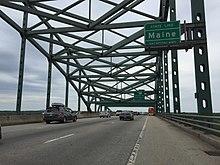 I-95 enters Maine as a six lane highway from New Hampshire on the Piscataqua River Bridge, which connects Portsmouth, New Hampshire with Kittery. At mile 0.38, the highway becomes the Maine Turnpike. The highway runs in a general northeasterly direction, parallel with U.S. Route 1 (US 1), at this point. I-95 bypasses the Biddeford/Saco area, with a spur route, I-195, connecting to Old Orchard Beach.