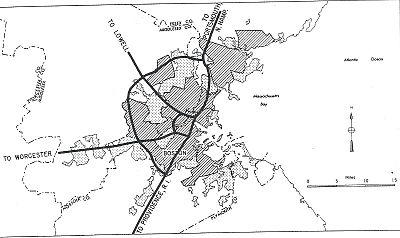 The original plans called for I-95 to run through downtown Boston. The highway would have progressed from Route 128 and Readville, followed the Southwest Corridor, ran along Melnea Cass Boulevard in Roxbury, heading east, and joining the Southeast Expressway at South Bay, then north to the Central Artery at the South Station interchange with the Massachusetts Turnpike/I-90, and connecting with the Northeast Expressway at the Charlestown banks of the Charles River.