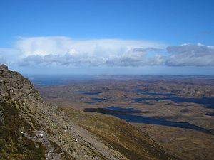 Inverpolly is the name given to a large area of northern Wester Ross in the Northwest Highlands of Scotland, north of Ullapool. The area contains several prominent hills, rising up from a rough landscape of bogs and lochans. For many years the area was designated national nature reserve but since 2004, the designation has been limited to the area of Knockan Crag.