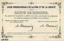 Bakunin played a prominent role in the Geneva Conference of the LPF (September 1867), and joined the Central Committee. The founding conference was attended by 6,000 people. As Bakunin rose to speak, "the cry passed from mouth to mouth: 'Bakunin!' Garibaldi, who was in the chair, stood up, advanced a few steps and embraced him. This solemn meeting of two old and tried warriors of the revolution produced an astonishing impression. [...] Everyone rose and there was a prolonged and enthusiastic clapping of hands".[42] At the Berne Congress of the LPF in 1868, Bakunin and other socialists (Élisée Reclus, Aristide Rey, Jaclard, Giuseppe Fanelli, N. Joukovsky, V. Mratchkovsky, and others) found themselves in a minority. They seceded from the LPF, establishing their own International Alliance of Socialist Democracy, which adopted a revolutionary socialist program.