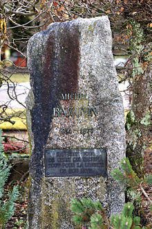 Bakunin died in Bern on 1 July 1876. His grave can be found in Bremgarten Cemetery of Bern, box 9201, grave 68. His original epitaph reads: "Remember he who sacrificed everything for the freedom of his country". In 2015, the commemorative plate was replaced in form of a bronze portrait of Bakunin by Swiss artist Daniel Garbade containing Bakunin's quote: "By striving to do the impossible, man has always achieved what is possible". It was sponsored by the Dadaists of Cabaret Voltaire Zurich, who adopted Bakunin post mortem.