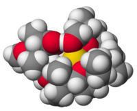 Many synthetic ionophores are based on crown ethers, cryptands, and calixarenes. Pyrazole-pyridine and bis-pyrazole derivatives have also been synthesized.[9] These synthetic species are often macrocyclic.[10] Some synthetic agents are not macrocyclic, e.g. carbonyl cyanide-p-trifluoromethoxyphenylhydrazone. Even simple organic compounds, such as phenols, exhibit ionophoric properties. The majority of synthetic receptors used in the carrier-based anion-selective electrodes employ transition elements or metalloids as anion carriers, although simple organic urea- and thiourea-based receptors are known.[11]