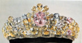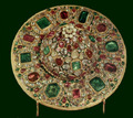 The Iranian National Jewels (Persian: جواهرات ملی ایران), originally the Iranian Crown Jewels (Persian: جواهرات سلطنتی ایران), include elaborate crowns, thirty tiaras, and numerous aigrettes, a dozen bejeweled swords and shields, a number of unset precious gems, numerous plates and other dining services cast in precious metals and encrusted with gems, and several other more unusual items (such as a large golden globe with the oceans made of emeralds) collected or worn by the Persian monarchs from the 16th century (Safavid Persia) and on. The collection is housed at The Treasury of National Jewels, situated inside the Central Bank of Iran on Tehran's Ferdowsi Avenue.[1]