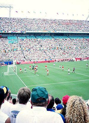 After missing out on Euro 1992 (despite being unbeaten in qualifying), the Republic of Ireland qualified for the 1994 World Cup, held in the United States, via a qualification group which again included Spain and Northern Ireland,[17] and ended with the Republic finishing above European champions Denmark by a very narrow margin (goals scored).[26] In their first match at the 1994 finals, they beat the previous World Cup hosts and third-place finishers, Italy, 1–0 in their opening game at Giants Stadium just outside New York City, but lost to Mexico 2–1 at the Citrus Bowl in the heat and humidity of Orlando, Florida. They ended the group stage with a 0–0 draw with Norway at Giants Stadium, in East Rutherford, New Jersey. With these results, they made it to the second round, eventually losing 2–0 to the Netherlands in Orlando.