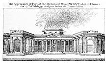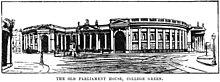 | _p109_PROSPECTIVE_VIEW_OF_THE_PARLIAMENT_HOUSE%2c_DUBLIN.jpg) Drawing of the front of Parliament House with the dome, seen from street-level, in the 18th century | |