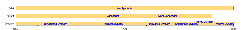 The beginning of the 1st millennium BC saw extensive developments in iron metallurgy in India. Technological advancement and mastery of iron metallurgy were achieved during this period of peaceful settlements. One ironworking centre in East India has been dated to the first millennium BC.[54] In Southern India (present-day Mysore) iron appeared as early as 12th to 11th centuries BC; these developments were too early for any significant close contact with the northwest of the country.[54] The Indian Upanishads mention metallurgy.[55] and the Indian Mauryan period saw advances in metallurgy.[56] As early as 300 BC, certainly by AD 200, high-quality steel was produced in southern India, by what would later be called the crucible technique. In this system, high-purity wrought iron, charcoal, and glass were mixed in a crucible and heated until the iron melted and absorbed the carbon.[57]