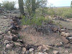 The Hohokam people were the first miners in the area. They mined andesite, which was useful for making agave knives. Andesite knives that originated from Hohokham mines within the monument perimeter have been found as far south as the Gulf of California in Mexico.