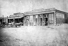 Some sources state that he opened a dry goods store in April 1865 “on the Baker Block”.[14] The Baker Block did not open until 1875, however is one short city block north of Hellman's store at the southeast corner of Main and Commercial streets.