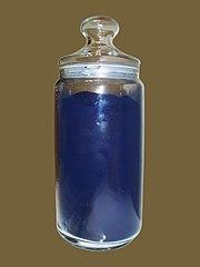 Celtic blue is a shade of blue, also known as glas celtig in Welsh, or gorm ceilteach in both the Irish language and in Scottish Gaelic. Julius Caesar reported (in Commentarii de Bello Gallico) that the Britanni used to colour their bodies blue with vitrum, a word that means primarily "glass", but also the domestic name for the "woad" (Isatis tinctoria), besides the Gaulish loanword glastum (from Proto-Celtic *glastos "green"). The connection seems to be that both glass and the woad are "water-like" (lat. vitrum is from Proto-Indo-European *wed-ro- "water-like").[14] In terms of usage, Latin vitrum is more often used to refer to glass rather than woad.[15] The use of the word for the woad might also be understood as "coloured like glass", applied to the plant and the dye made from it.