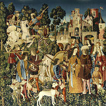 The three colours can be seen together in tapestries such as The Hunt of the Unicorn (1495–1505), though typically it is the dark blue of the woad that has lasted best. Medieval uses of the dye were not limited to textiles. For example, the illustrator of the Lindisfarne Gospels (c. 720) used a woad-based pigment for blue paint.