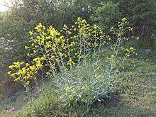 Isatis tinctoria, also called woad (/ˈwoʊd/), dyer's woad, or glastum, is a flowering plant in the family Brassicaceae. It is occasionally known as Asp of Jerusalem. Woad is also the name of a blue dye produced from the leaves[2] of the plant. Woad is native to the steppe and desert zones of the Caucasus, Central Asia to Eastern Siberia and Western Asia (per Hegi[3]) but is now also found in South-Eastern and Central Europe and western North America.