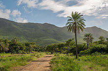 The highest portion of the Serranía de Macanao forms a wide arc as a semicircle or amphitheater open to the northwest, surrounding a protected valley, extremely picturesque, where the town of S. Francisco is settled. From the highest hill, Los Cedars, which occupy a central position, and Towards the northwest, the Serranía loses altitude gradually into a continuum in which alternating downward and small slopes climbs to the Guarataro hill, which from the east it stands out as a small pyramidal stone projection but from the north is projected as an isolated hill whose profile of steep and long slopes offers one of the most striking perspectives of the silhouette of the entire Serranía. Following the Guarataro and going north, there is a wide valley with rounded hills, crossed or separated by ravines or ravines. Partial view of the Serranía. On the right the hill "Guarataro".