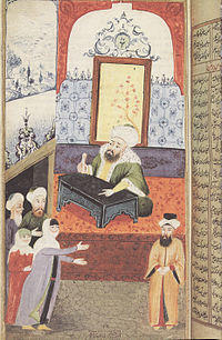 Unlike pre-modern cultures where the ruling dynasty promulgated the law, Islamic law was formulated by religious scholars without involvement of the rulers. The law derived its authority not from political control, but rather from the collective doctrinal positions of the legal schools (madhhabs) in their capacity as interpreters of the scriptures. The ulema (religious scholars) were involved in management of communal affairs and acted as representatives of the Muslim population vis-à-vis the ruling dynasties, who before the modern era had limited capacity for direct governance.[84] Military elites relied on the ulema for religious legitimation, with financial support for religious institutions being one of the principal means through which these elites established their legitimacy.[85][84] In turn, the ulema depended on the support of the ruling elites for the continuing operation of religious institutions. Although the relationship between secular rulers and religious scholars underwent a number of shifts and transformations in different times and places, this mutual dependence characterized Islamic history until the start of the modern era.[86][84] Additionally, since Sharia contained few provisions in several areas of public law, Muslim rulers were able to legislate various collections of economic, criminal and administrative laws outside the jurisdiction of Islamic jurists, the most famous of which is the qanun promulgated by Ottoman sultans beginning from the 15th century.[13] The Mughal emperor Aurangzeb (r. 1658-1707) issued a hybrid body of law known as Fatawa-e-Alamgiri, based on Hanafi fatwas as well as decisions of Islamic courts, and made it applicable to all religious communities on the Indian subcontinent. This early attempt to turn Islamic law into semi-codified state legislation sparked rebellions against Mughal rule.[87]