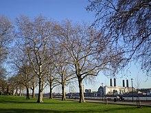 The 1.12-hectare (2.8-acre) waterside park is notable for its cross-river view of the classical buildings of the former Greenwich Hospital, the Cutty Sark and the National Maritime Museum, with Greenwich Park forming a backdrop.[1] The northern entrance of the Greenwich foot tunnel is also within the park. It is almost certain that the view from this location is the one that the Canaletto painting "Greenwich Hospital from the North Bank of the Thames" is taken from, though whether Canaletto himself actually visited the site is in doubt.[2]