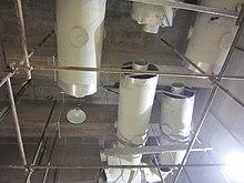 Each phase current is carried on a separate conductor, enclosed in a separate grounded metal housing.[1] Conductors are usually hollow aluminum tubes or aluminum bars, supported within the housing on porcelain or polymer insulators. The metal housings are electrically connected so that induced current, nearly of the magnitude of the phase current, can flow through the housing, in the opposite direction from the phase current. The magnetic field produced by this current nearly exactly cancels the magnetic field produced by the phase current, so there is almost no external magnetic field produced. This also limits the amount of force produced between conductors during a short circuit. The external housings of the conductors remain at a low potential with respect to earth ground and are usually bonded to ground.