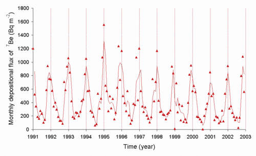 in sediments is often used to establish that they are fresh, i.e. less than about 3–4 months in age, or about two half-lives of 7