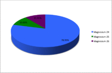 | 26Mg[n 6] | 12 | 14 | 25.98259297(3) | Stable | 0+ | 0.1101(3) | 0.10987–0.11030 | ||