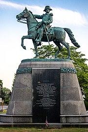 During the winter of 1778–1779, Putnam and his troops were encamped at the site now preserved as the Putnam Memorial State Park in Redding, Connecticut. On February 26, 1779, Putnam escaped from the British, riding down a steep slope in Greenwich, Connecticut for which he became famous.[53] A statue commemorating this escape was erected at Putnam Memorial State Park.[54] In December 1779, Putnam suffered a paralyzing stroke, which ended his military service.[55]