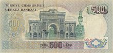 - ^ Central Bank of the Republic of Turkey "Archived copy". Archived from the original on 3 June 2009. Retrieved 5 January 2008.. Banknote Museum: 6. Emission Group – Five Hundred Turkish Lira – I. Series Archived 4 February 2009 at the Wayback Machine & II. Series Archived 4 February 2009 at the Wayback Machine. – Retrieved 20 April 2009.