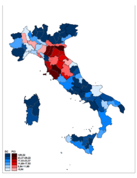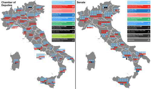 - ^ The number of seats for each constituency went from 1 for Aosta Valley to 36 for Milan.