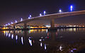 The Itchen Bridge is a bridge over the River Itchen in Southampton, Hampshire. It is a high-level hollow box girder bridge. It is located about a mile from the river mouth. The bridge spans 870 yards (800 m), is 92 feet (28 m) at its highest point and weighs 62,000 tons.[1] The bridge connects the A3025 Portsmouth Road to Southampton. It was built to replace the former chain ferry, known as the Floating Bridge, that crossed the river at that point. The bridge's set of blue energy-saving lights can be seen from up to 5 miles (8.0 km) down Southampton Water from the bridge.