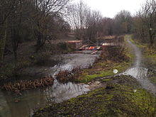 In 1911, a Mr Bowker from Shawford successfully applied for the towpath to be diverted, but this was overturned when Rev. J H Du Boulay appealed against the decision. The diversion was sanctioned in 1914, although there have been doubts about the legality of the action, and subsequently two further diversions were made, at Chickenhall, near the southern end and at Hockley, near the northern end. No maintenance was carried out on the waterway until the formation of Catchment Boards.[17] Thus responsibility for the waterway as a drainage channel passed to the Hampshire Catchment Board in 1942, and some work was carried out to maintain the integrity of the waterway. These responsibilities later passed to the Southern Water Authority, and now reside with the Environment Agency.[18]