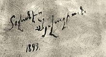 Aivazovsky has always been considered an Armenian painter in his ancestral homeland[24] and virtually always referred to there by his Armenian name, Hovhannes.[94] Virtually all Armenian, some Russian[95] and English[5] sources, refer to him as Hovhannes Ayvazovski (Armenian: Հովհաննես Այվազովսկի; Russian: Ован(н)ес Айвазовский, Ovan(n)es Aivazovsky).[6][96] The artist signed some of his paintings and letters in Armenian.[97] For instance, his signatures in both Armenian (Այվազեան, Ayvazean) and Russian (Айвазовскій, Ayvazovskiy) appear on Valley of Mount Ararat (1882).[10]