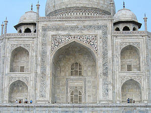 As well as often using numbers of iwans on the exterior of buildings, as at the Taj Mahal, iwans were often placed on all or several sides of internal spaces and courtyards, a form going back to Parthian times.[16]