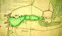 The placename was first mentioned in 1210 as Elsela, from the Old Dutch Else(n)lo, meaning alder woods.[3] The origins of the village date from the foundation of La Cambre Abbey. Hendrik I, Duke of Brabant, donated the Pennebeke domain (Pennebeek was the original name of the Maalbeek spring) to the Cistercian nun Gisela in 1201. She in turn founded the Abbey, and in 1210, acquired property on which the duke ordered the construction of a mill.[4] The marshlands around the Abbey were later drained and sanitised, which resulted in four springs which served as a source of fish for the Abbey's inhabitants and the neighbouring hamlets.[5] The Abbey was located near the springs of the Maelbeek river in the Sonian Forest, the remnant of which closest to Brussels became known as the Bois de la Cambre/Ter Kamerenbos in the 19th century. The Abbey was recognised by Jan III van Bethune, the Bishop of Cambrai, in 1202, soon after its foundation.[6] The saints Boniface of Brussels and Alice of Schaerbeek were two of its most famous residents in the 13th century.