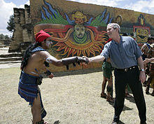 United States President Bush visited the site on March 12, 2007. Local Maya priests said that they would be conducting purifying rites after his visit to cleanse the area of "bad spirits" brought by the president, who they said persecuted their "migrant brothers" in the United States. "We reject this portrayal of our people as a tourist attraction," a spokesman, Morales Toj, said.[19]