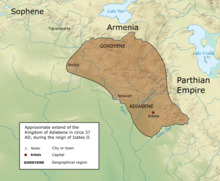 Izates II (Greek: Ἰζάτης, Hebrew: זוטוס בן מונבז; ca. 1-54 CE) was king of the Parthian client kingdom of Adiabene from approximately 30 to 54.[1] He is notable for converting to Judaism. He was the son of Queen Helena of Adiabene and Monobaz I of Adiabene. Queen Helena was also said to be the wife of King Abgarus of Edessa and thus the queen of Edessa too.[2]