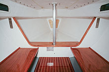 The cabin is small, low and equipped with a single rectangular fixed port on each side, while the cockpit is 7 ft (2.1 m) long and is self-bailing.[3][6]