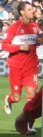On 12 September 2009, he came off the bench against Ipswich Town to score two goals after 30 minutes of being on the pitch, and scored another goal in the same week against Sheffield Wednesday. His next goal came on 26 December against Scunthorpe United, in his first start under new manager Gordon Strachan due to injury. Having failed to reach the play-offs, and after three injury hit seasons at Middlesbrough, he left the club on 30 June 2010 at the end of his contract having decided not to take up the option of extending his contract. In total, he made 86 appearances and scored 12 goals for the club.[35] The 2010–11 pre-season found Aliadière training with West Ham with a view to a permanent move to the London club. The deal fell through when he damaged his knee ligaments playing in a reserve game against Crystal Palace. Subsequently, his old club Middlesbrough offered the player full use of their rehabilitation and training facilities in order to overcome the injury and regain full fitness.[36]