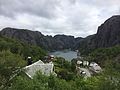 Jøssingfjorden is a fjord in Sokndal municipality in Rogaland county, Norway. The 3-kilometre (1.9 mi) long fjord is narrow and deep and is surrounded by mountains. It sits about 4 kilometres (2.5 mi) southeast of the municipal centre of Hauge. There is some settlement on the southeastern side of the fjord: the villages of Li, Vinterstø, and Bu. There is a road that runs along the southeast coast of the fjord, with sharp hairpin turns leading down from the mountains to the shore of the fjord both heading north and south from the fjord.[1]