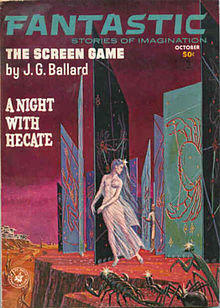 From 1958 Ballard worked as assistant editor on the scientific journal Chemistry and Industry.[26] His interest in art led to his involvement in the emerging Pop Art movement, and in the late fifties he exhibited a number of collages that represented his ideas for a new kind of novel. Ballard's avant-garde inclinations did not sit comfortably in the science fiction mainstream of that time, which held attitudes he considered philistine. Briefly attending the 1957 Science Fiction Convention in London, Ballard left disillusioned and demoralised[27] and did not write another story for a year. By the late 1960s, however, he had become an editor of the avant-garde Ambit magazine,[28] which was more in keeping with his aesthetic ideals.