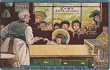 In April 2020 an original enamel advertising sign with the distinctive "five boys" trademark design was featured on BBC's Antiques Roadshow and was valued at £1,000-£1,500.[12] The boy featured in the design, Lindsay Poulton, had been photographed in 1886 by his father who, for the first image, soaked a cloth in ammonia and wrapped it round the boy's neck to make him cry. Poulton, in his eighties, related this story to Fry's employees when he was given a tour of the Bristol factory.[13]