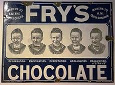 J. S. Fry & Sons, Ltd. better known as Fry's, was a British chocolate company owned by Joseph Storrs Fry and his family. Beginning in Bristol in the 18th century, the business went through several changes of name and ownership, becoming J. S. Fry & Sons in 1822. In 1847, Fry's produced the first solid chocolate bar.[1][2] The company also created the first filled chocolate sweet, Cream Sticks, in 1853.[1] Fry is most famous for Fry's Chocolate Cream, the first mass-produced chocolate bar, which was launched in 1866, and Fry's Turkish Delight, launched in 1914.[1]