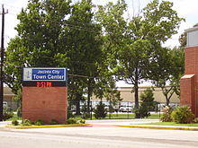 In 1941 Frank Sharp established a subdivision which filled with shipyard workers and workers at nearby steel mills and war plants. Jacinto City incorporated in 1947 with nearly 3,800 residents; its first mayor was Inch Handler.[6] Because of the 1947 incorporation, Houston did not incorporate Jacinto City's territory into its city limits, while Houston annexed surrounding areas that were unincorporated.[7] The town still serves as a bedroom community for local industry. In the 1950s the city opened a city hall and recreational facilities. By 1960 the city had 9,500 people and by 1964 the city had 11,500 people. In 1966 the city had seventeen churches, two schools, one hospital, one bank, and one library. A waste-water facility funded by the Environmental Protection Agency opened in 1972; the Handbook of Texas stated that this may be due to complaints from residents about chemical vapors in 1969. In 1990 the city had 9,343 people.[6]