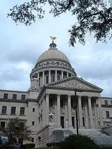 Images top, left to right: Mississippi State Capitol, Old Mississippi State Capitol, Lamar Life Building, Mississippi Governor's Mansion | |