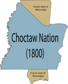 The region that is now the city of Jackson was historically part of the large territory occupied by the Choctaw Nation. The Choctaw name for the locale was Chisha Foka.[9] The area now called Jackson was obtained by the United States under the terms of the Treaty of Doak's Stand in 1820, by which The United States acquired the land owned by the Choctaw Native Americans. After the treaty was ratified, American settlers moved into the area, encroaching on remaining Choctaw communal lands. One of the original Choctaw members, in 1849, described what he and his people experienced during this turbulent time when the Europeans had come to take their land. "We have had our habitations torn down and burned" as well as their "fences burned" while they themselves constantly faced personal abuse and have been "scoured, manacled and fettered".[10]