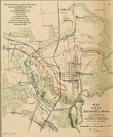 Union forces completely burned the city after its capture this second time. The city was called "Chimneyville" because only the chimneys of houses were left standing.[20] The northern line of Confederate defenses in Jackson during the siege was located along a road near downtown Jackson, now known as Fortification Street.