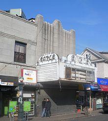 There were five historic movie theaters in Jackson Heights, which are all currently either repurposed or closed.[10] The Art Deco Earle Theater, opened in 1936 on 37th Road between 73rd and 74th streets, was a neighborhood movie theater before becoming a porn theater and then, with the name changed to "Eagle", a Bollywood theater before a strike in the Bollywood industry caused the theater to close permanently in 2009;[10] it is now a food court selling cuisine of the Indian subcontinent.[72] The Fair Theatre, opened in 1939 at Astoria Boulevard and 90th Street, became a porn theater.[10] The Polk Theater, on 37th (formerly Polk) Avenue and 93rd Street, opened in 1938 and closed in 2006, also was a porn theater during its later years, before it was demolished in 2008.[10][73] The Colony Theater, on 82nd Street north of Roosevelt Avenue, opened in 1935 and closed in 1991. The Jackson, afterwards an Indian-owned theater under the name of the Jackson Heights Cinema, on 82nd Street south of Roosevelt Avenue, was demolished in March 2017.[74] Finally, the Boulevard Theater, on Northern Boulevard and 83rd Street, is now a Latin-American restaurant of the same name.